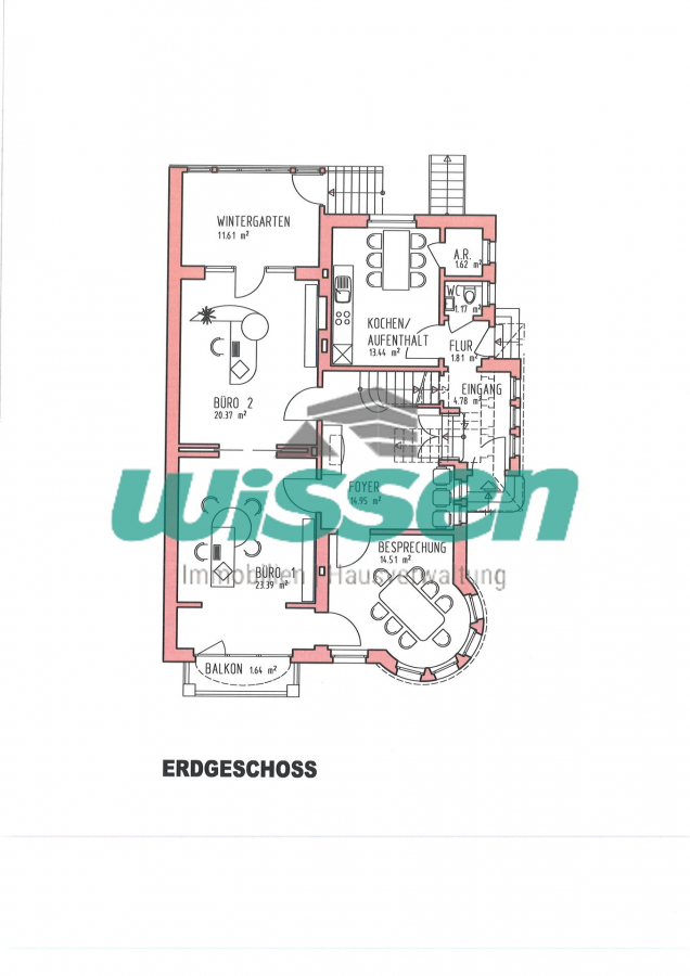 3 großzügige, lichtdurchflutete Büroräume, Abstellraum, Wintergarten und Loggia