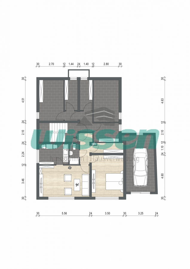 Zusätzlich stehen eine Garage sowie vier Außenstellplätze zur Verfügung.