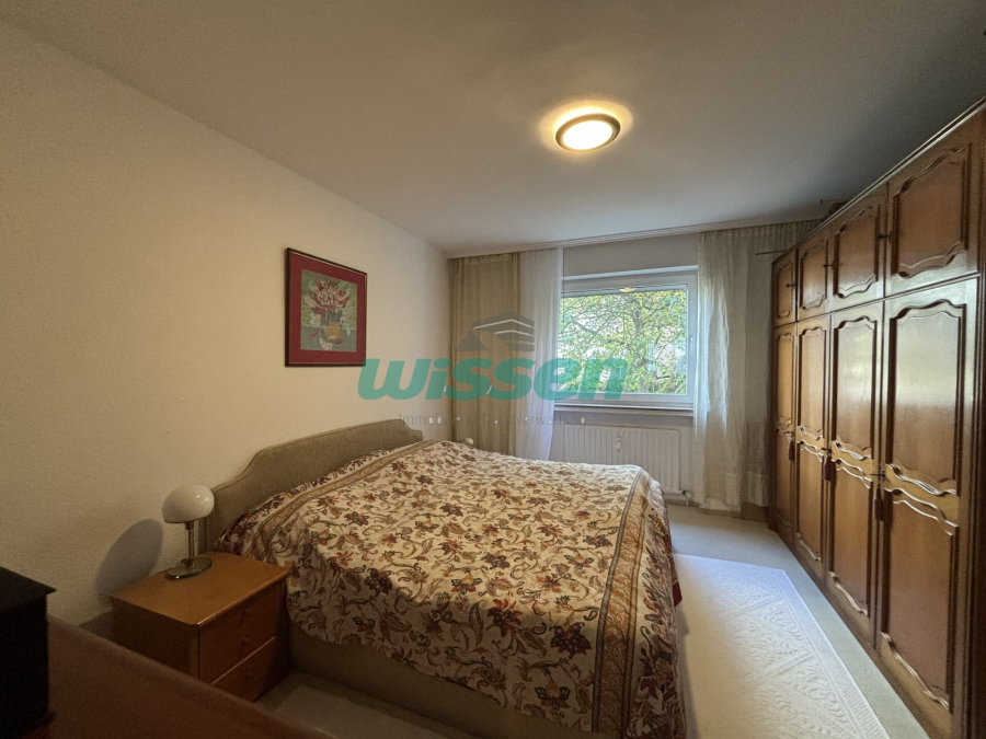 Das Schlafzimmer ist mit Teppichboden versehen und schafft eine angenehme Wohnatmosphäre.