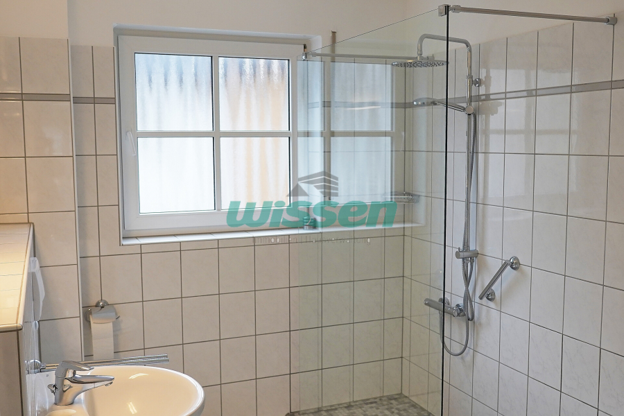 • Badezimmer mit begehbarer Dusche, nahezu bodengleich mit minimaler Einstiegshöhe