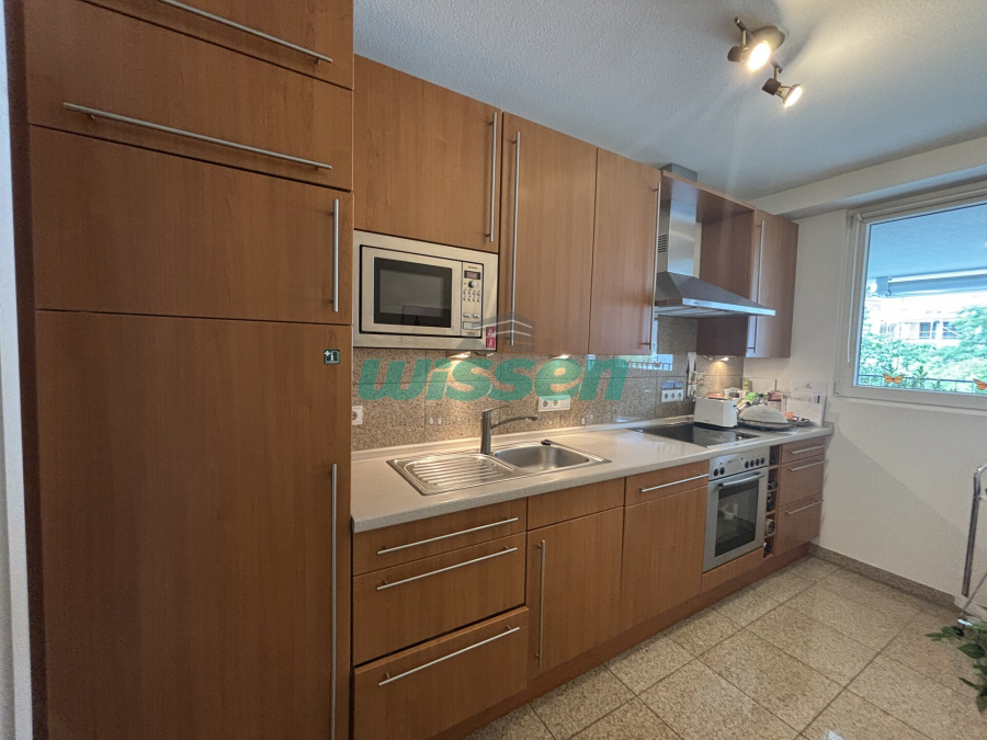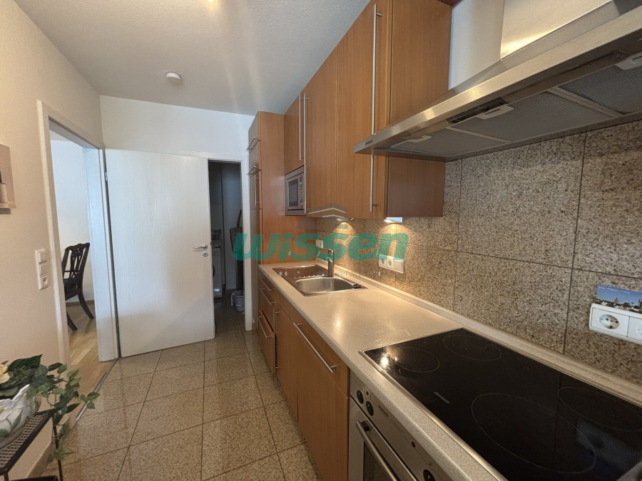 Die Tageslichtküche ist separat vom Wohnzimmer und mit einer gepflegten Einbauküche ausgestattet. Der angrenzende Hauswirtschaftsraum bietet zusätzlichen Stauraum und die Möglichkeit Waschmaschine und Trockner aufzustellen.