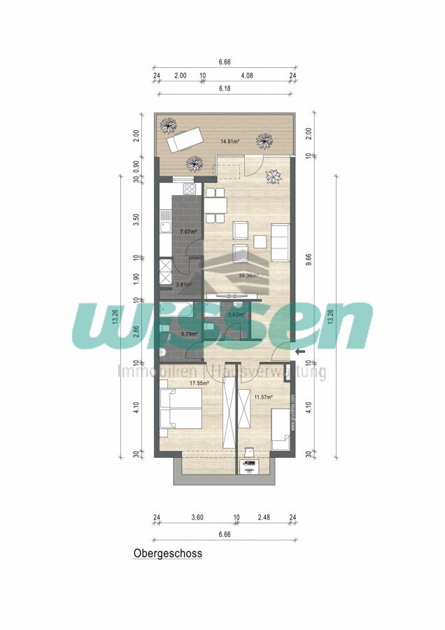 Herzstück ist der weitläufige Wohn- und Essbereich mit Zugang zur sonnigen West-Loggia – ideal, um den Feierabend mit Blick ins Grüne ausklingen zu lassen. Dank neuwertiger, elektrischer Markise genießen Sie hier angenehmen Schatten an warmen Tagen.