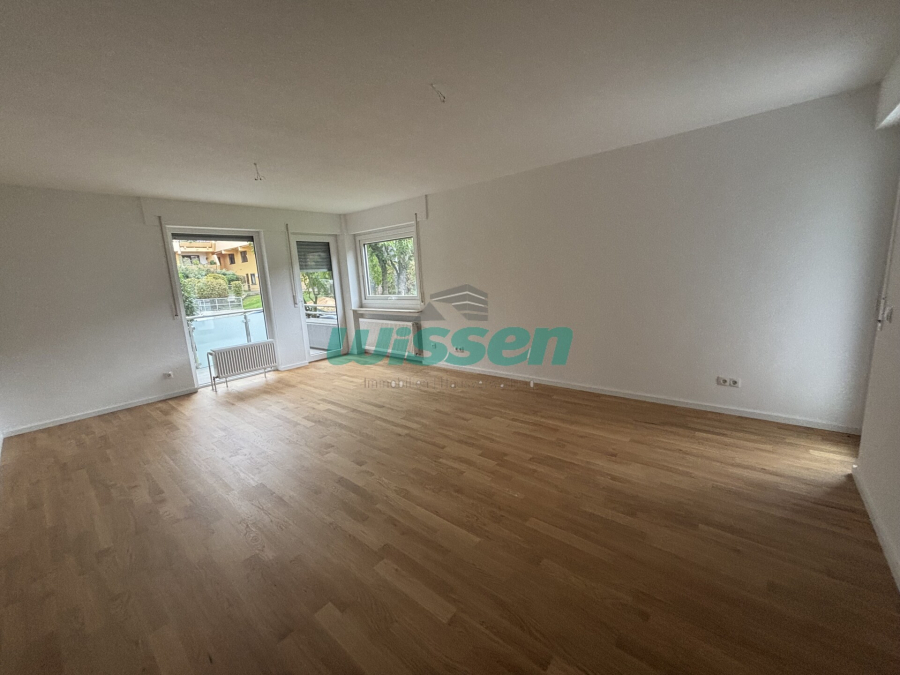 Der Wohn- und Essbereich mit edlem Parkettboden bietet Zugang zu gleich zwei Balkonen, die zu unterschiedlichen Tageszeiten Sonne und Ruhe genießen lassen.