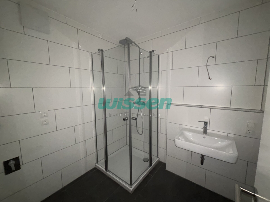 Das innenliegende Badezimmer wurde im Zuge der Sanierung neu gestaltet und verfügt über eine komfortable Dusche sowie eine Waschmaschinenanschlussmöglichkeit in der Wohnung.