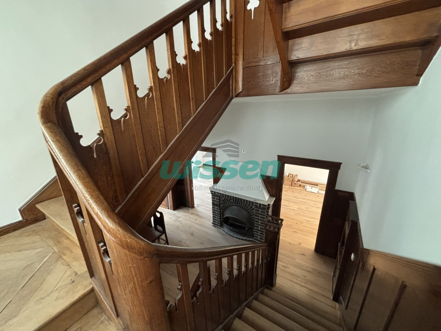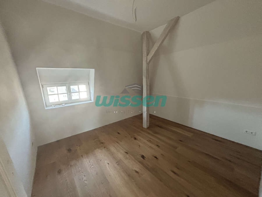 Die Wohnung liegt im zweiten Obergeschoss der Villa und erstreckt sich von der eigentlichen Wohnetage noch über einen zusätzlichen ausgebauten Dachboden. Der Spitzboden bietet sich in erster Linie als zusätzlicher Stauraum oder auch als Spielzimmer für Kinder an.